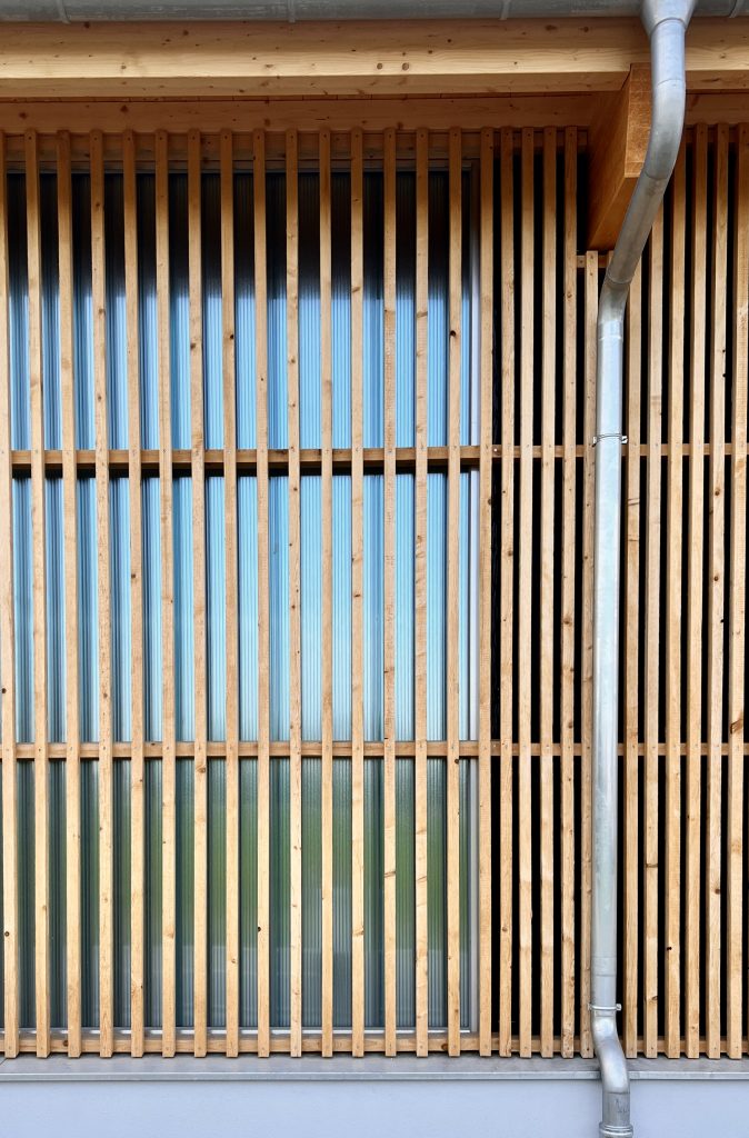 Die Fassade aus Holz sorgt nicht nur für eine harmonische Einbindung in die Umgebung, sondern auch für einen wärmetechnisch und bauphysikalisch ausgewogenen Aufbau.